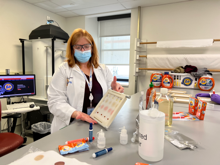 On the ISS, astronauts will treat pre-stained fabrics from Earth and fabrics they stain in flight with our Tide To Go products. The series of stains tested are some that astronauts commonly encounter, such as Sriracha, coffee, fruit punch and oil. The main objective of the experiments is to understand how microgravity affects product stability and stain removal efficacy, according to Tide Research Fellow Mark Sivik.